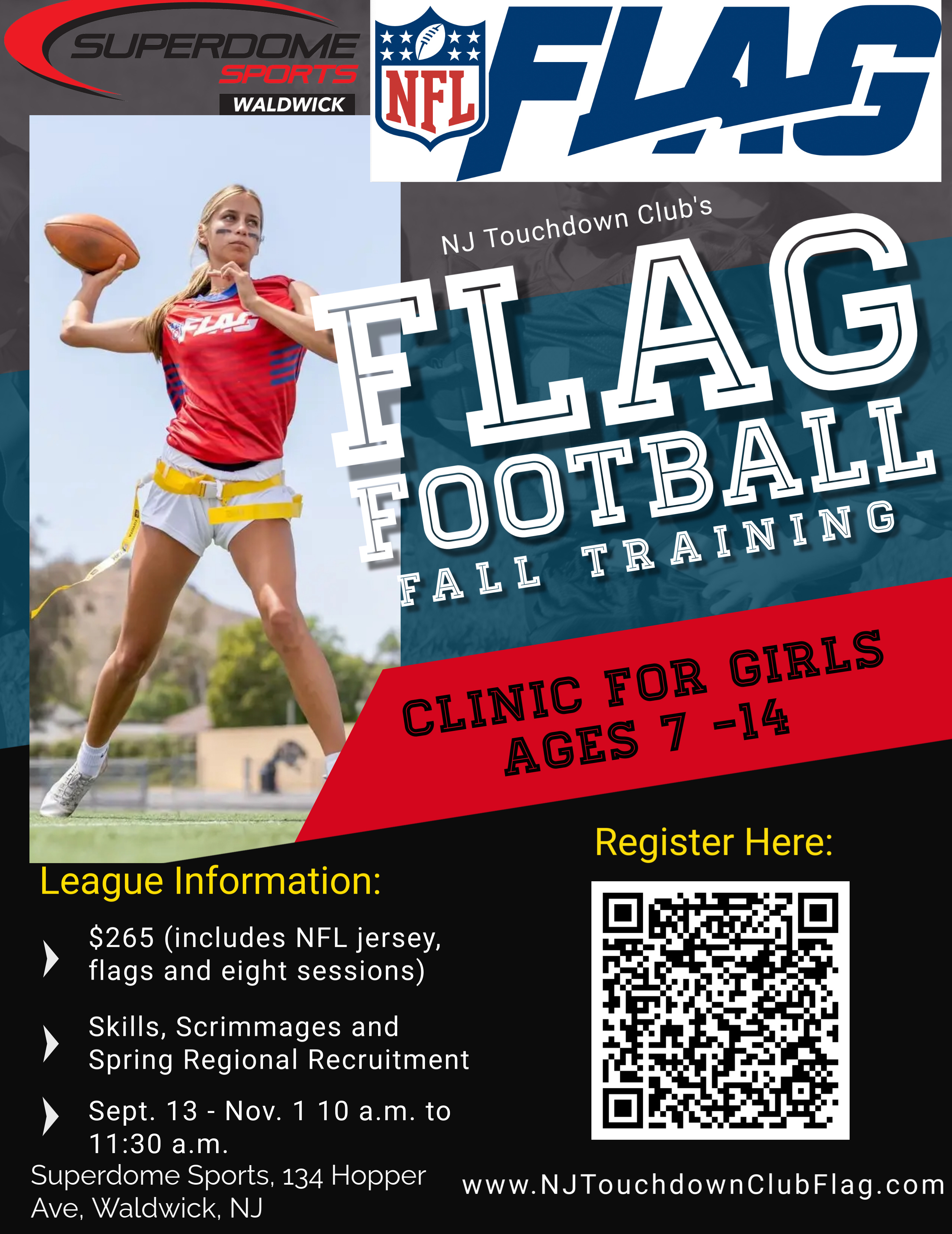 This fall, the NFL Girls Flag Football Program kicks off at the Waldwick Superdome β an exciting opportunity for girls to learn the game or elevate their game in a fun, fast-paced, and empowering environment.